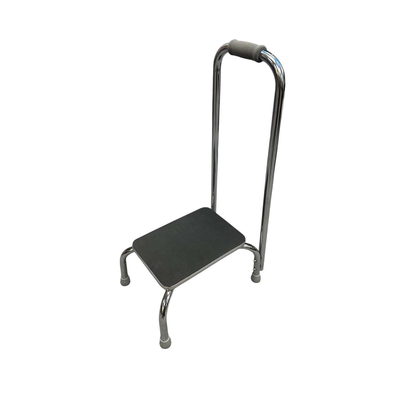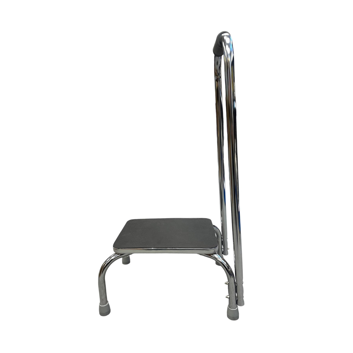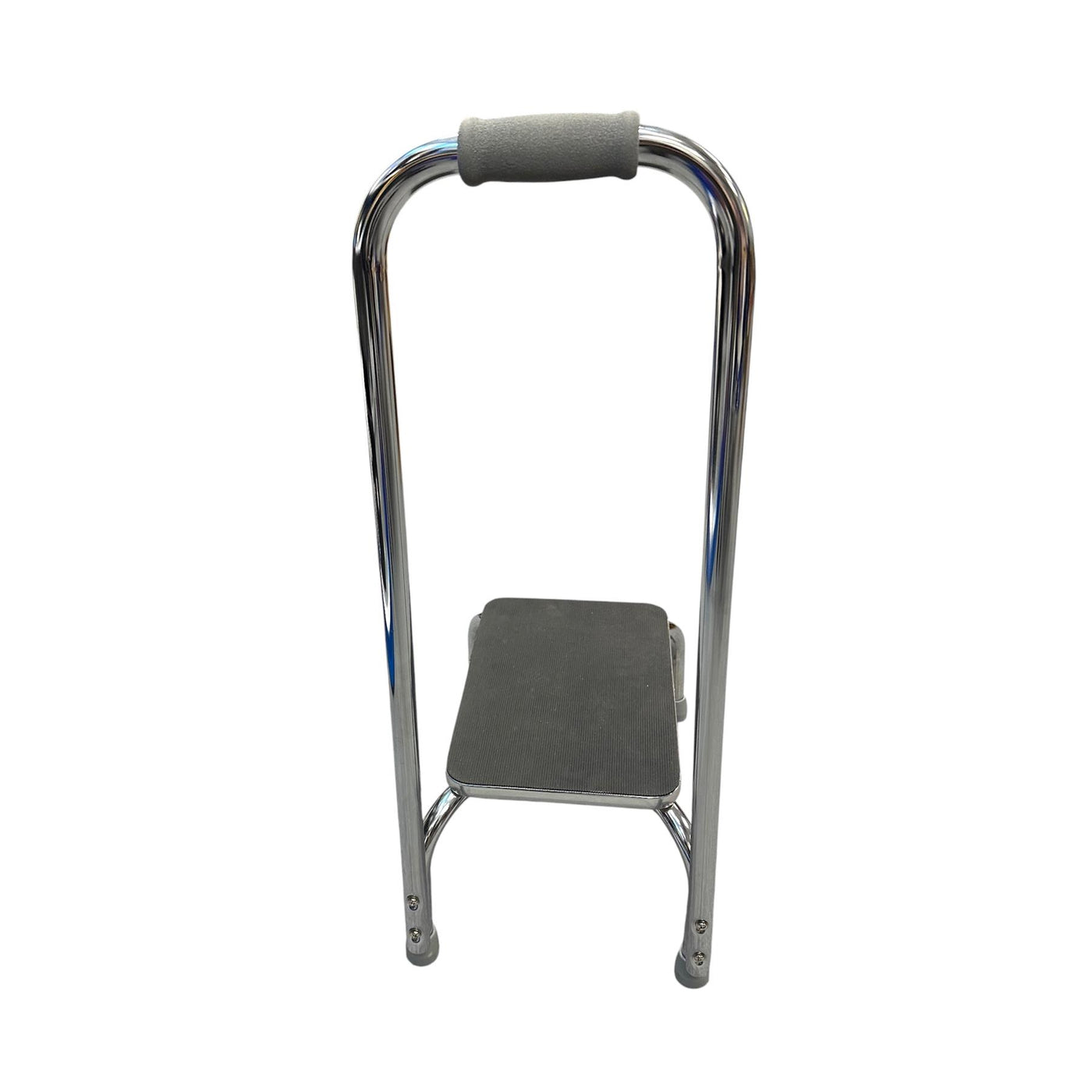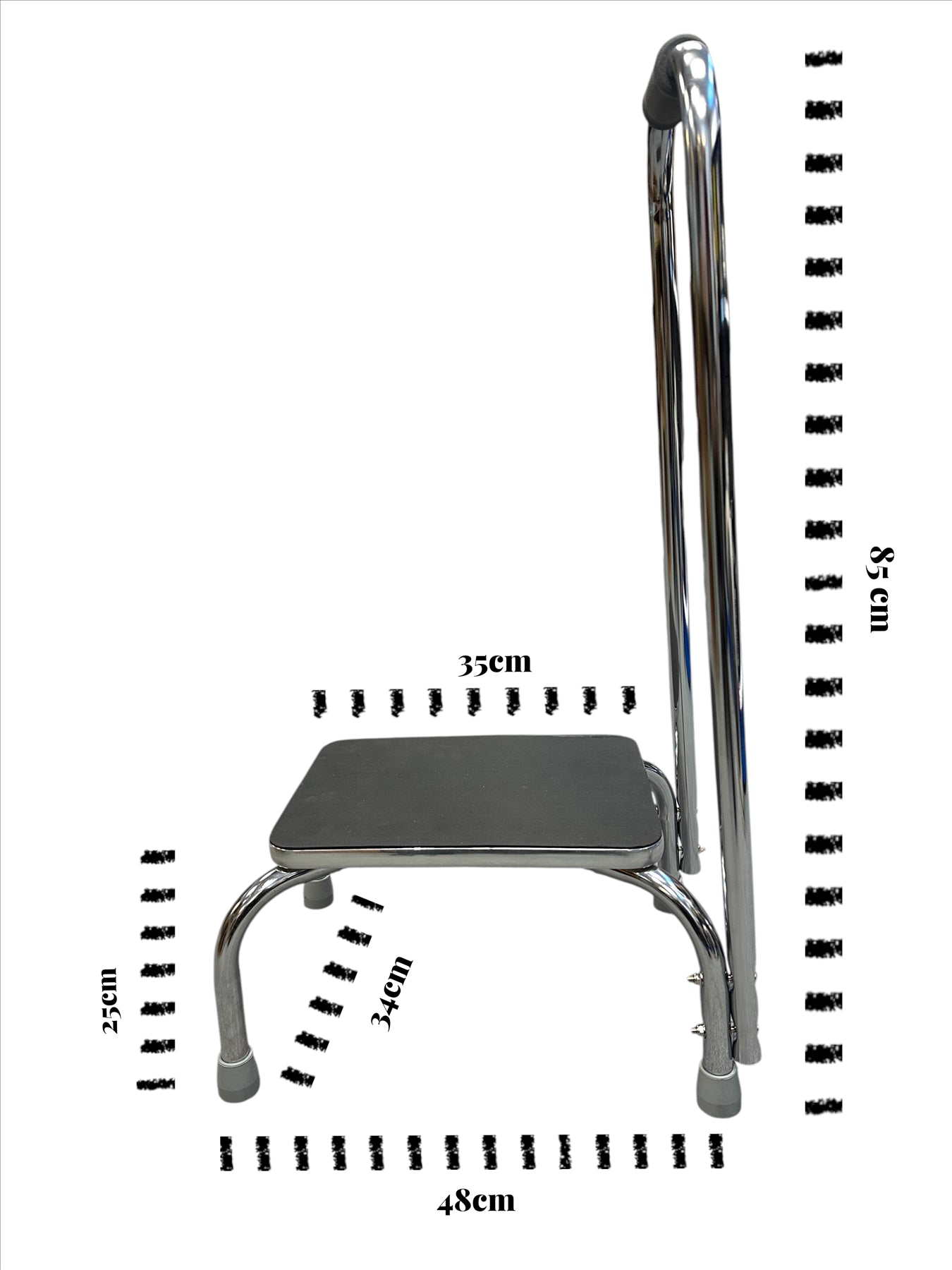 The Railed Bath Step Stool has a large step with a non slip rubber mat surface and a large easy to grip hand rail to ensure the user has all the assistance required to get into and out of the bath with complete confidence and in safety. The step stool has been designed to improve user safety and is ideal for both the elderly or disabled people that suffer from low, restricted or painful mobility. Manufactured from chrome plated steel tubing, to resist corrosion, the step stool is fiited with four non slip rubber ferrules on it's feet to prevent movement whilst in use. The stable and secure step surface along with the additional support of the handrail ensure that correct use of this essential addition to any bathroom can significantly help to reduce the risk of slips or fall around the home. The Railed Bath Step Stool is an ideal aid all around the home, allowing the user to reach high kitchen cupboards, bookshelves, or wardrobes with improved safety and with confidence, helping to improve all around independent living. Key User Benefits Helps to ensure safe entry and exit from the bath, reducing the risk of slips and falls Made from corrosion resistant chrome plated tubing for use in the bathroom Ideal aid for those individuals with restricted, low or painful mobility Helps to improve safety around the home and promote independent living Low cost but essential aid Product Specifications Bath Step Stool width: 470mm (18.5 inches) Bath Step Stool depth: 365mm (14.25 inches) Bath Step Stool height: 240mm (9.5 inches) Handrail height: 870mm (34.25 inches) Total product weight: 2.8 kgs (6 lbs) Maximum user weight: 100kgs (15.75 st)