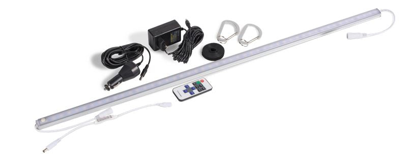 The Sabrelink™ lighting system ensures you're never in the dark. The system allows you to link up to three lights together. Each of our AirFrame awnings is SabreLink™ ready and can accept lights on the front AirPoles and also the centre poles. A Rally AIR 390, for example, could have three lights along the front and another three in the centre. Each system is controlled using a remote control that allows you to switch the lights on and off and also dim and brighten them. In our poled awnings, the lights can be hunt from the horizontal poles using the 'S' hooks provided. LED bulbs provide a super bright light source, have ultra-low power consumption and never need to be replaced. Please note: To ensure best performance, allow 20 seconds between turning on and off (don't turn on and off repeatedly). Features: Up to three lights can link together Operated using a remote control Brightness can be adjusted Velcro tabs on all 2016 Kampa Air awnings for easy fitting 48 super bright LED bulbs - never needs replacing 5 metre cable (starter kit) 3 metre cable(Add-on) Lights 80 cm long Complete with mains adaptor in Starter kit Karabiner clips and velcro options included for other awnings and tents